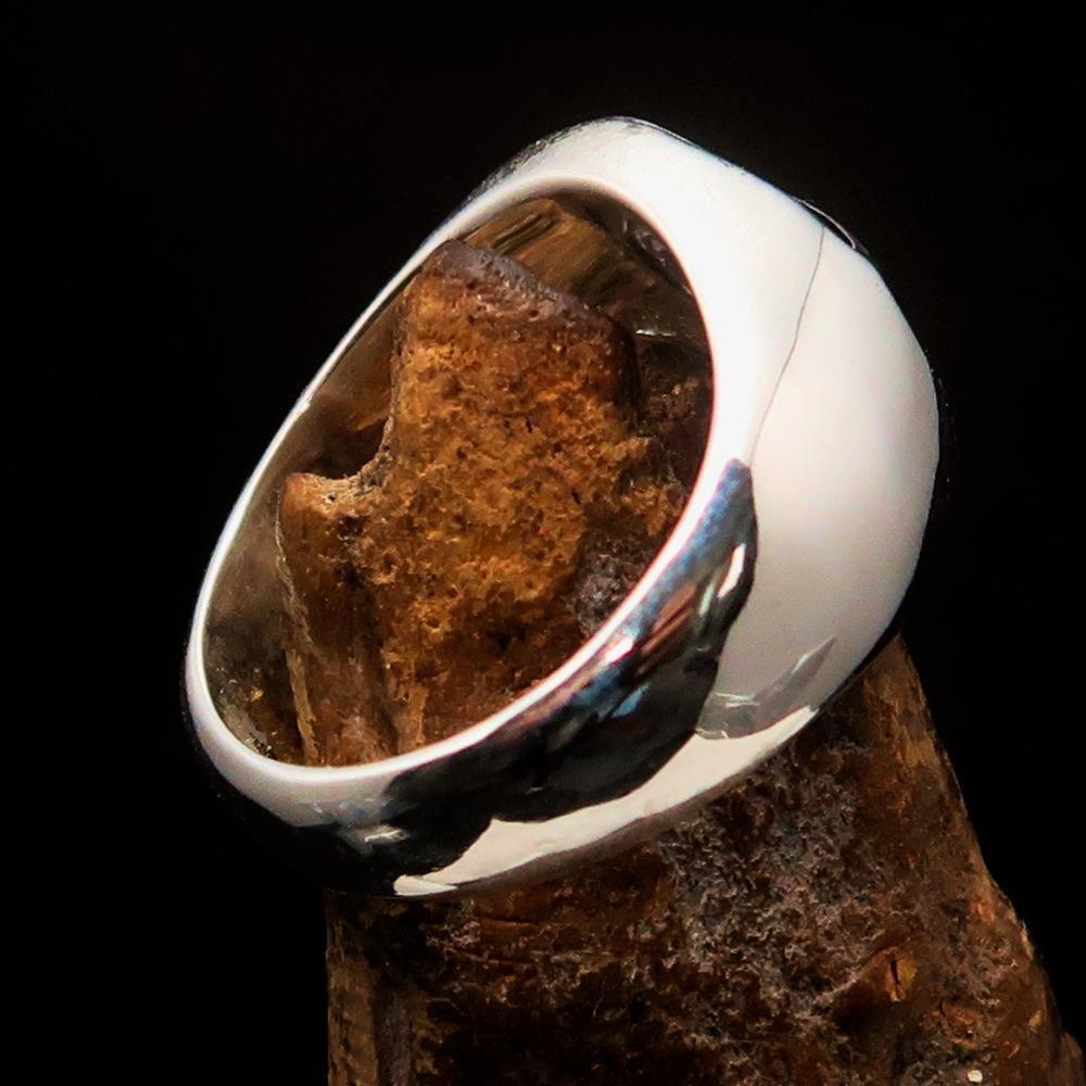 Perfectly domed Men's Solid Line Pentagram Ring Black - Sterling Silver