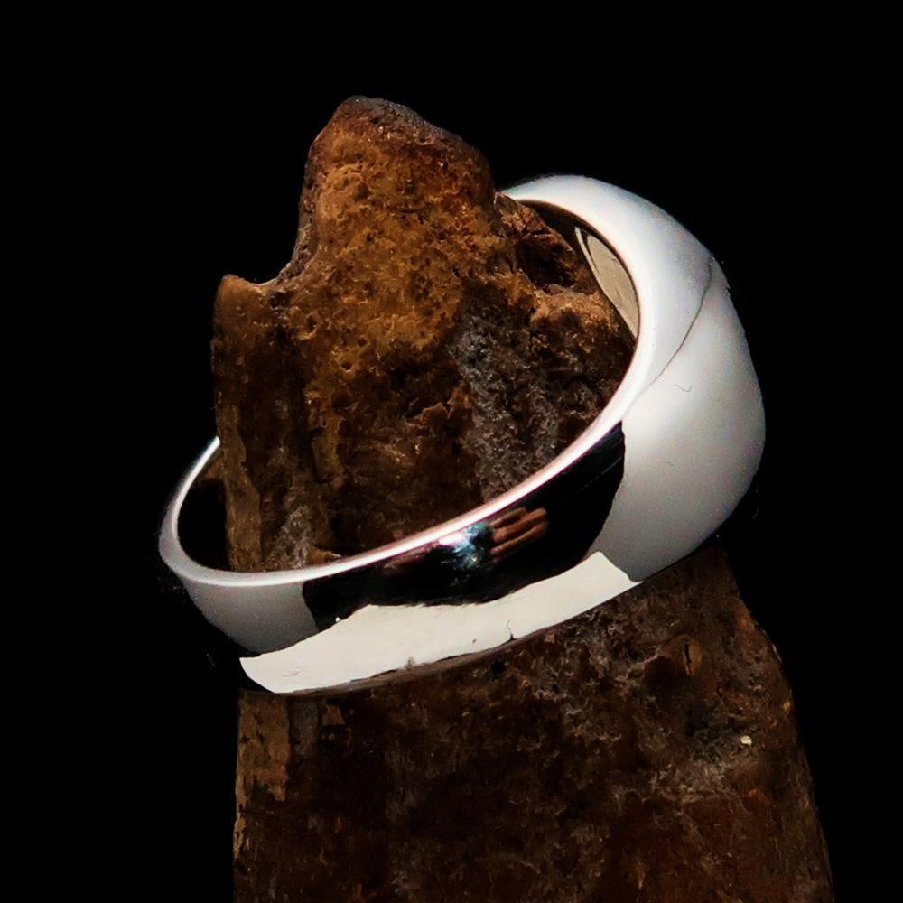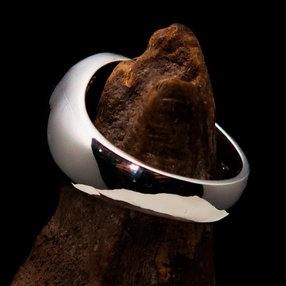 Perfectly domed Men's Solid Line Pentagram Ring Blue - Sterling Silver