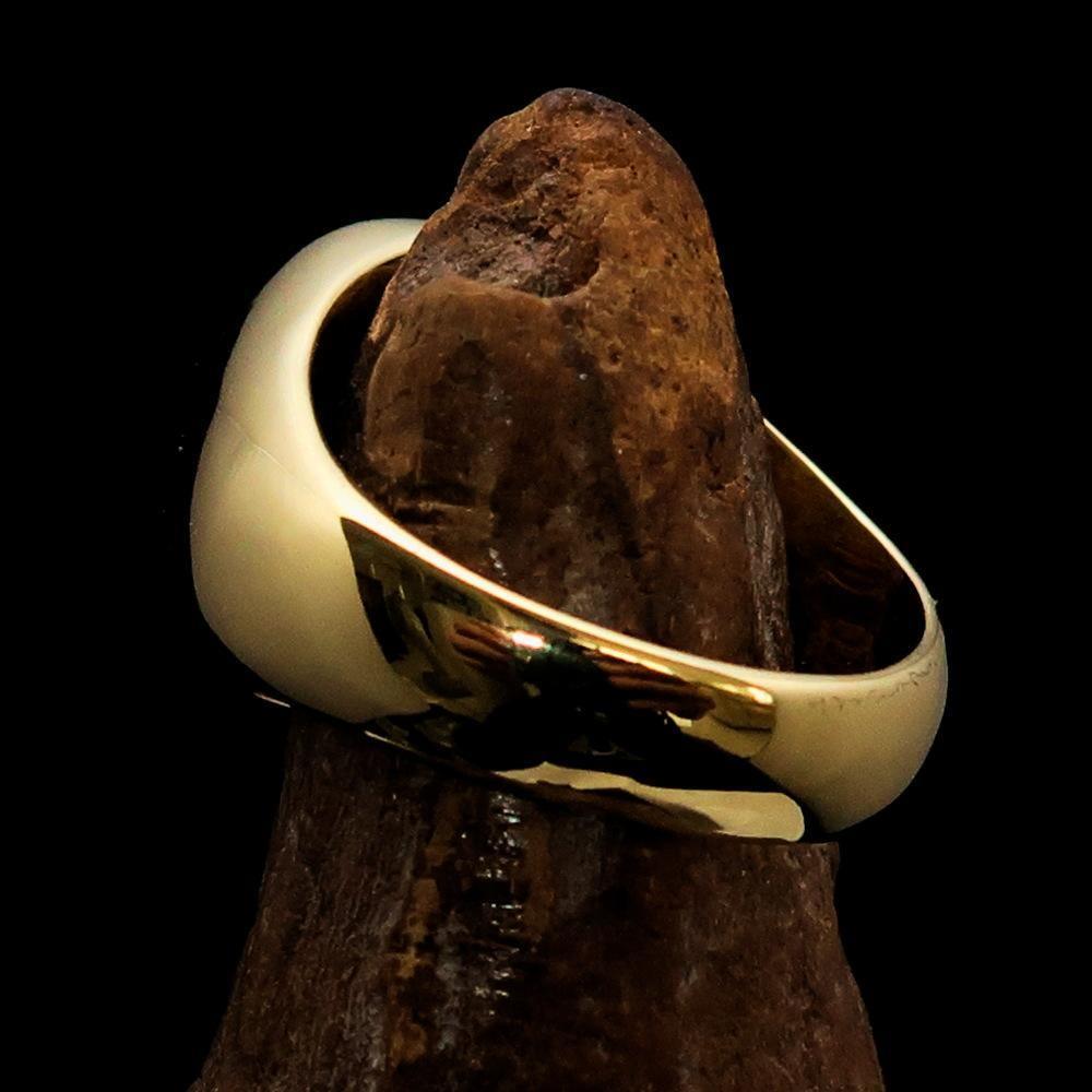 Solid Brass Men's domed Solid Line Pentagram Ring. High polished with red Enamel.